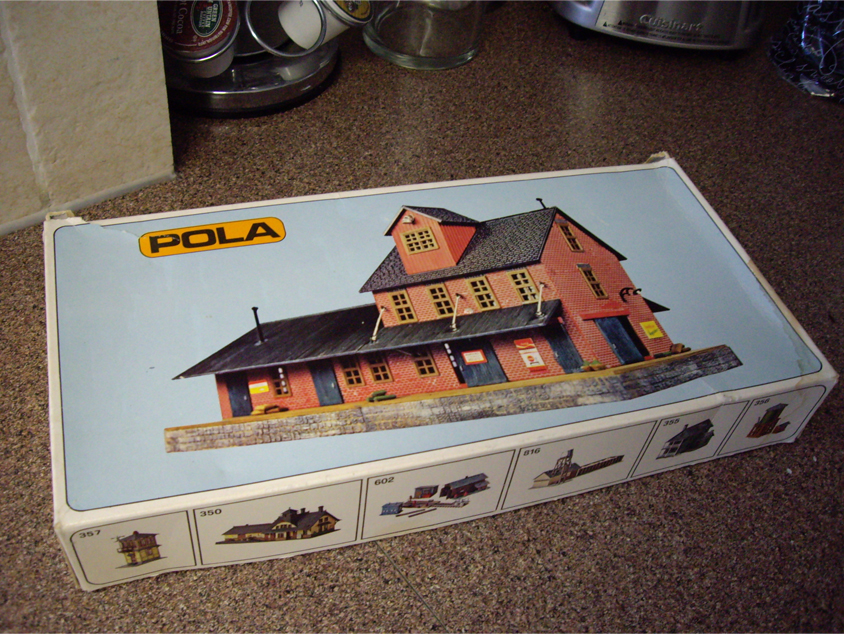I�ve taken a little break from my layout, and instead decided to spend the last few weeks trying my hand on my first model structure. I have never put together a plastic model building before, and the last time I did any kind of plastic model was a couple cars that I did back when I was 12-13 years old, which turned out less-than-satisfactory. This kit was given to me by my friend, who found it mixed in with a bunch of junk at a local thrift-store. The kit is an old POLA-HO Freight Station #557. I was surprised to find that all the pieces were intact inside the kit, and nothing was missing except a couple small accessories. This would be a perfect practice kit!